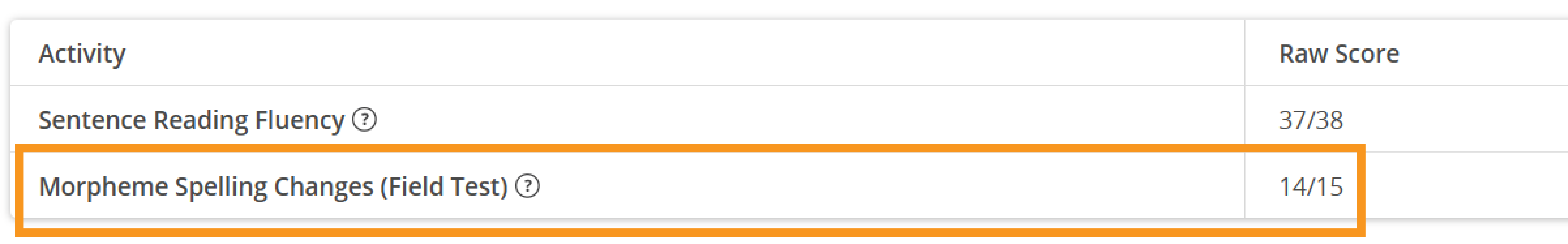Field test measures generate a raw score under the Activity section and include “(Field Test)” in the displayed activity name.