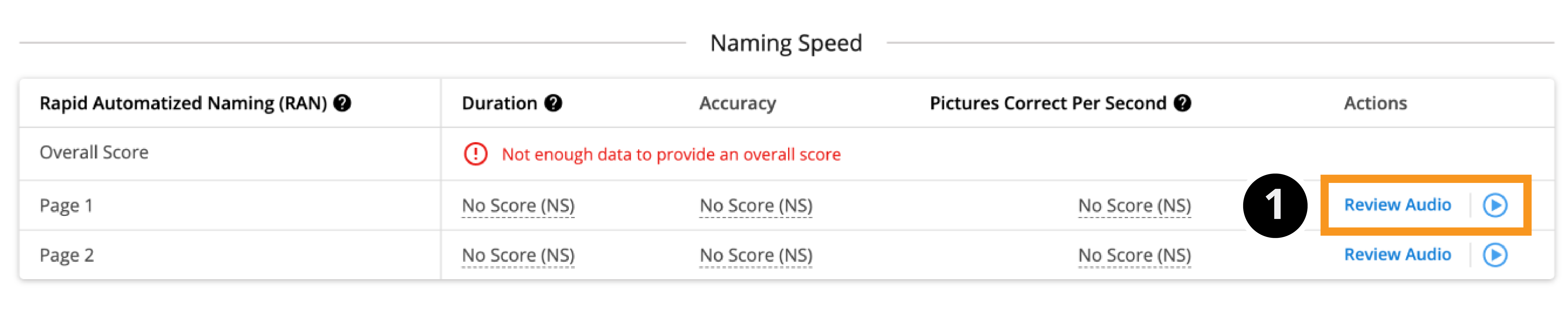 The best way to correct for these edge cases is as follows. If the recording is comprehensible but was assigned a “NS” by the system, use the hand-scoring features to determine the word-level errors. The hand-scored results will then populate in reporting. If a recording is not comprehensible, select “omit passage” to exclude a poor recording from overall reports.