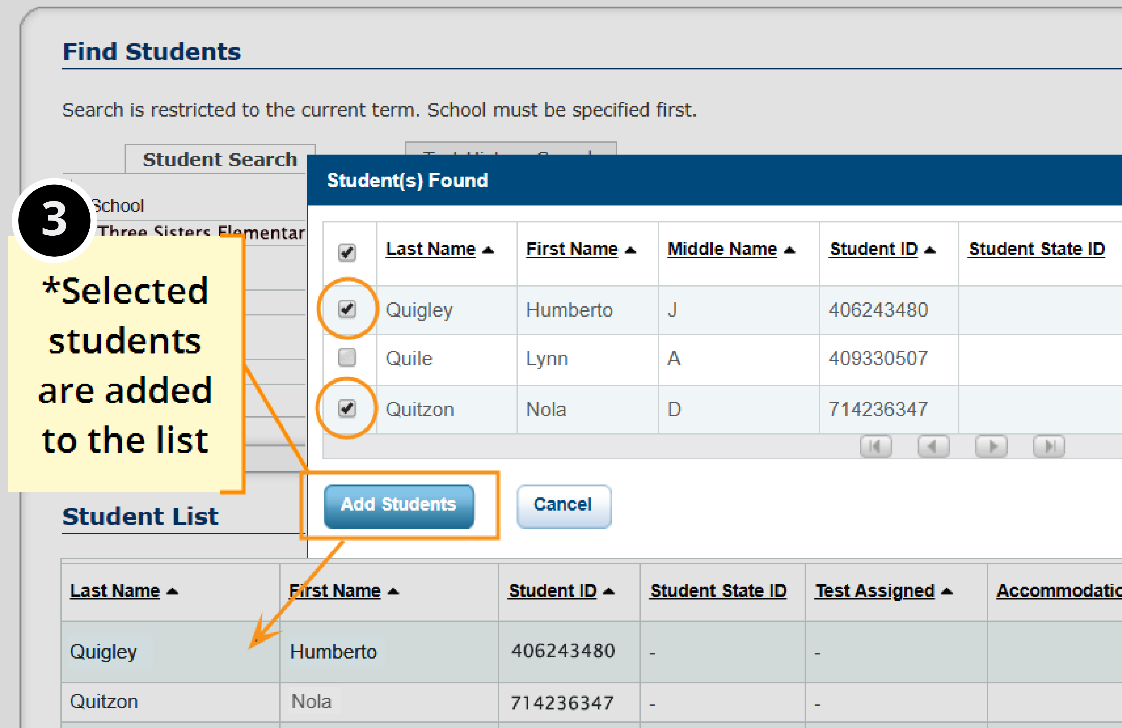 2. Select the student and then Assign Test(s) to assign a new test (and also Assign Accommodations if it differs for the new test).